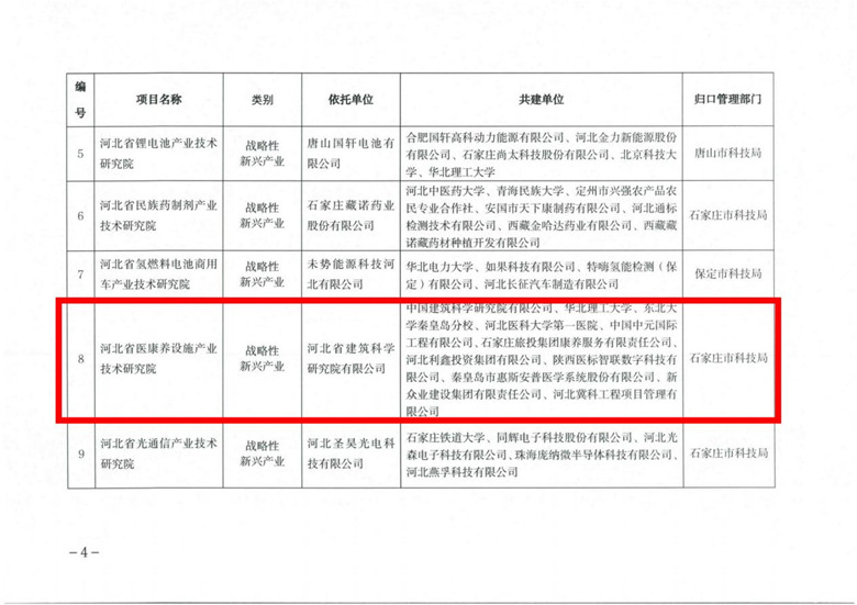 為深入貫徹落實黨的二十大精神,深入踐行“健康中國”戰略,立足醫康養融合高效發展,探索醫康養全產業鏈優質高效發展的路徑和舉措,河北省建筑科學研究院有限公司牽頭發起成立的河北省醫康養設施產業技術研究院近日通過河北省科學技術廳審批。